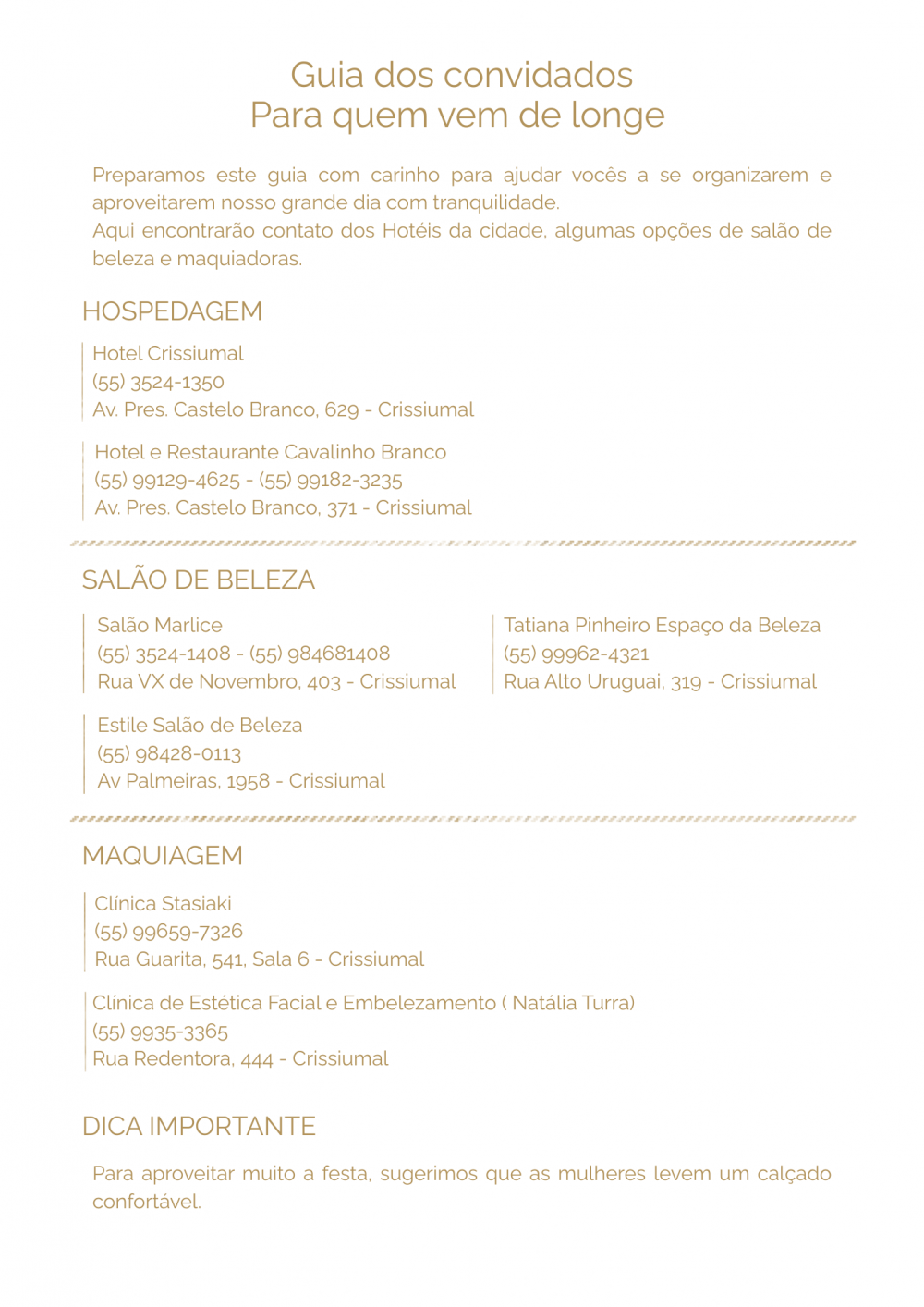 Depois da cerimônia, é hora de comemorarmos juntos! A recepção será no Clube Crissiumal, a apenas 700 metros da igreja. Avenida Palmeiras, 1645 – Crissiumal/RS